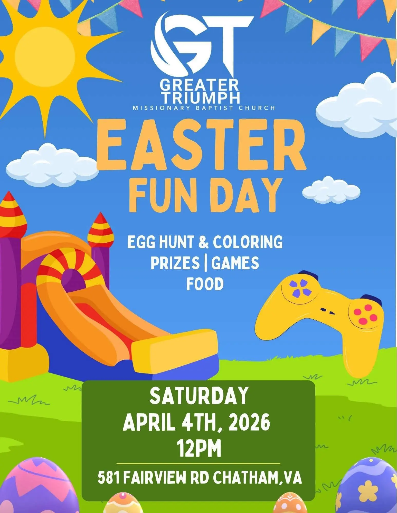 Greater Triumph Missionary Baptist Church will host their Easter Fun Day on Saturday April 4th beginning at 12pm.